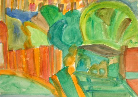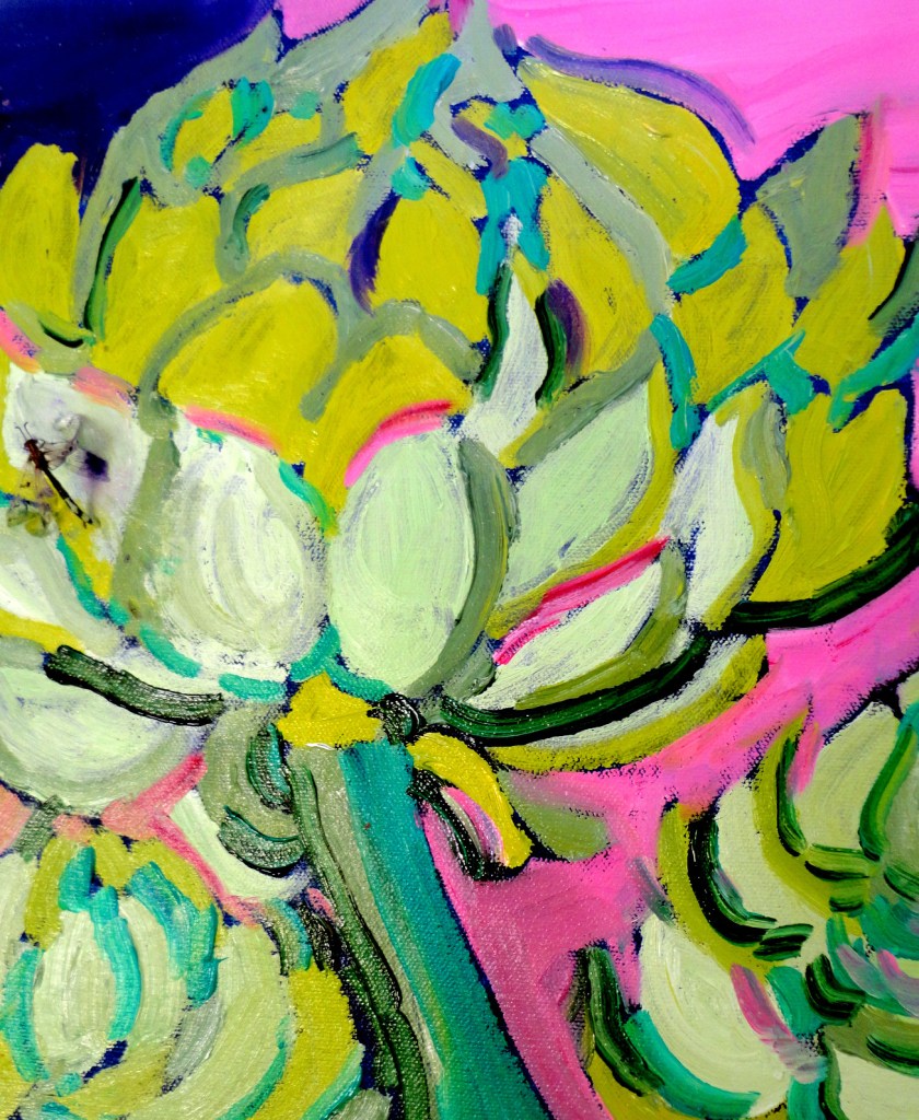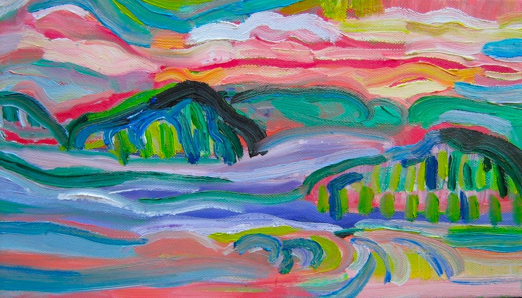 The following paintings are from Elizabeth Greisman’s time as Artist In Residence in Marnay-sur-Seine, France (at Maison Verte) and Mojácar, Spain.